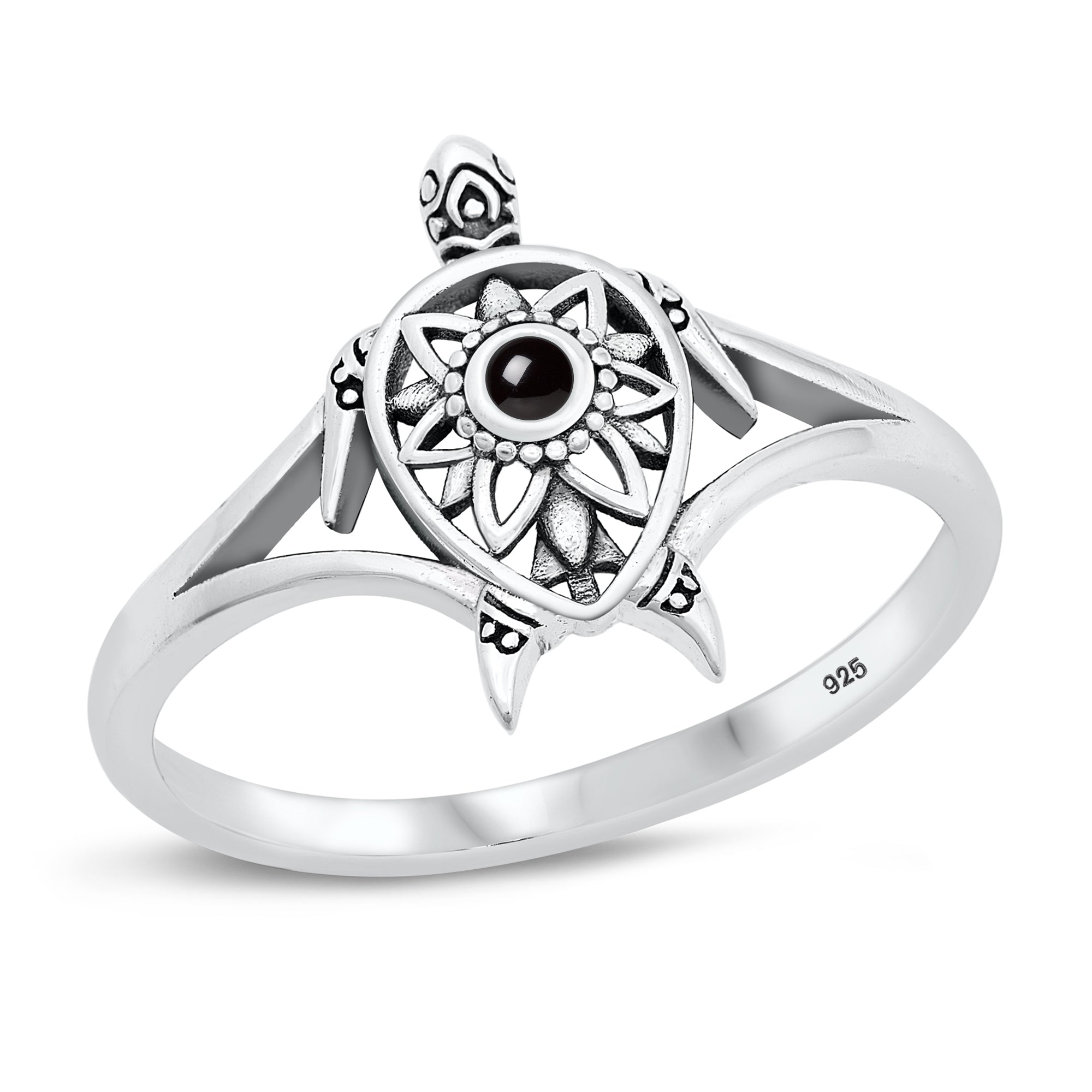Sterling Silver Black Agate Sea Turtle Ring