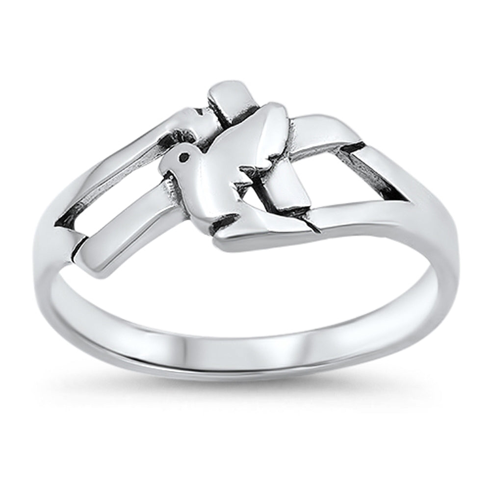 Cross Dove Jesus Savior Christian Love Ring .925 Sterling Silver Band Sizes 5-10