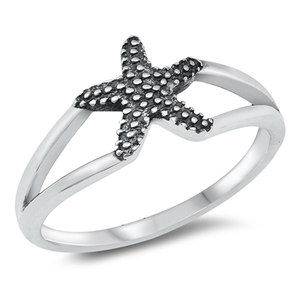 Unique Realistic Oxidized Starfish Animal Ring New .925 Sterling Silver Band Sizes 4-10