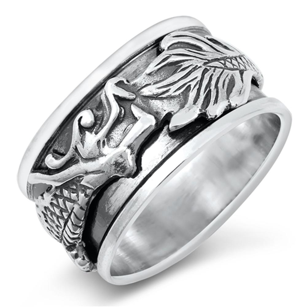 Polished Oxidized Realistic Etched Dragon Ring New .925 Sterling Silver Band Sizes 7-13