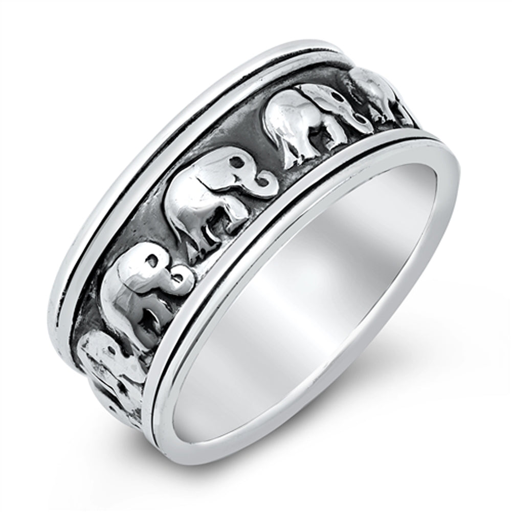 Classic Repeating Elephant Animal Ring New .925 Sterling Silver Band Sizes 6-11