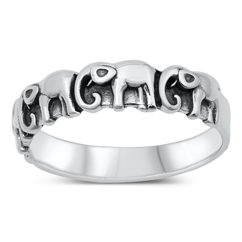 Lucky Elephant Family Animal Ring New .925 Sterling Silver Band Sizes 5-10