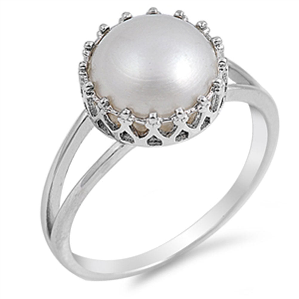 Deep Set Freshwater Pearl Wedding Ring New .925 Sterling Silver Band Sizes 4-10