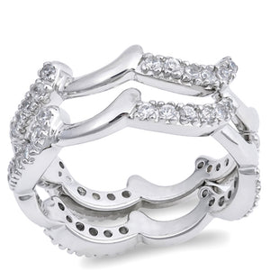 White CZ Stackable Ring Set .925 Sterling Silver Ocean Wave Band Sizes 5-9