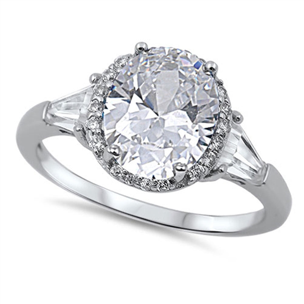 White CZ Polished Solitaire Simple Ring New .925 Sterling Silver Band Sizes 5-10