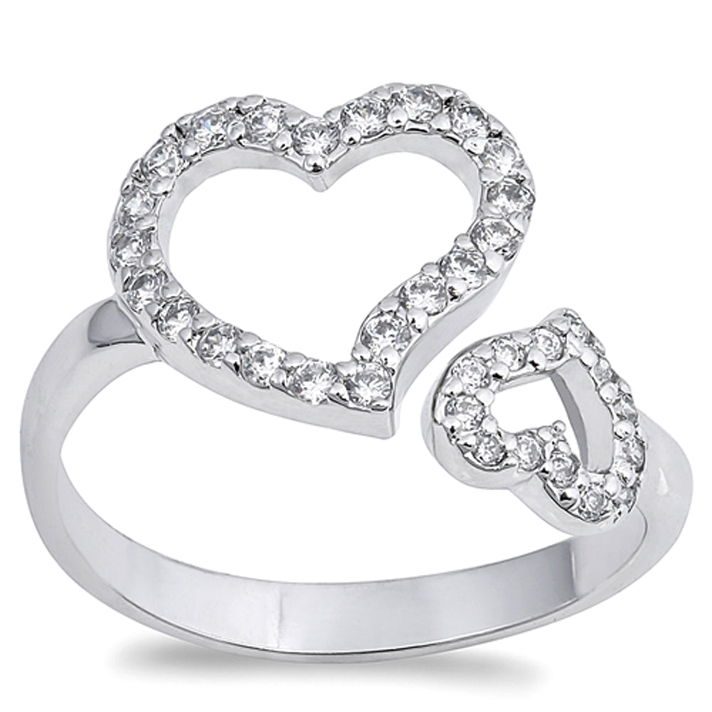 White CZ Pave Heart Open Promise Ring New .925 Sterling Silver Band Sizes 5-9