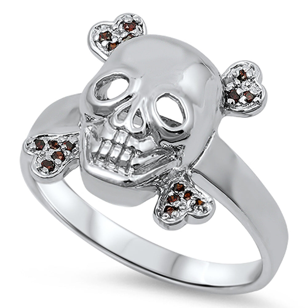 Garnet CZ Skull Heart Polished Goth Ring New 925 Sterling Silver Band Sizes 5-13