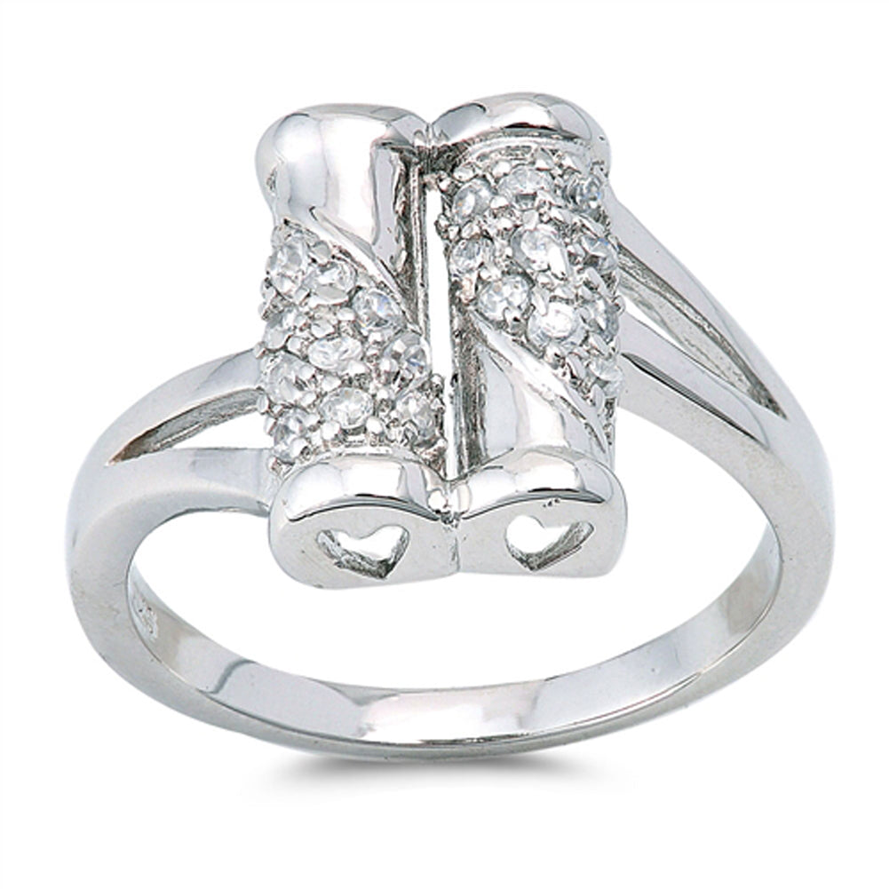 Scroll Heart Cutout White CZ Wholesale Ring .925 Sterling Silver Band Sizes 5-9