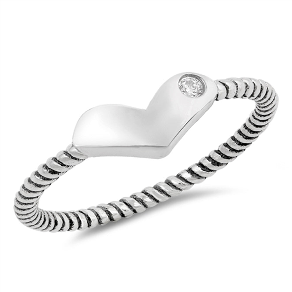 Clear CZ Twisted Antiqued Heart Delicate Ring Sterling Silver Band Sizes 4-10