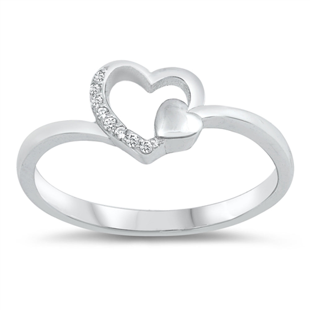 Clear CZ Heart Love Friendship Cute Ring .925 Sterling Silver Band Sizes 3-10
