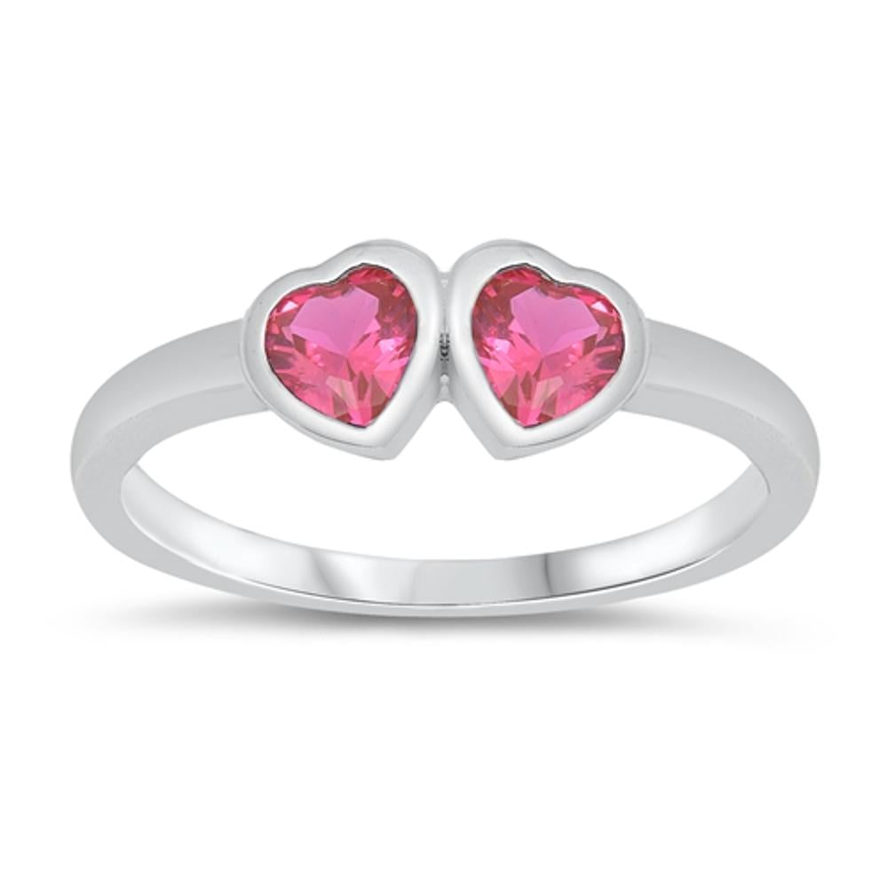 Ruby CZ Double Heart Love Baby Cute Ring New 925 Sterling Silver Band Sizes 1-5