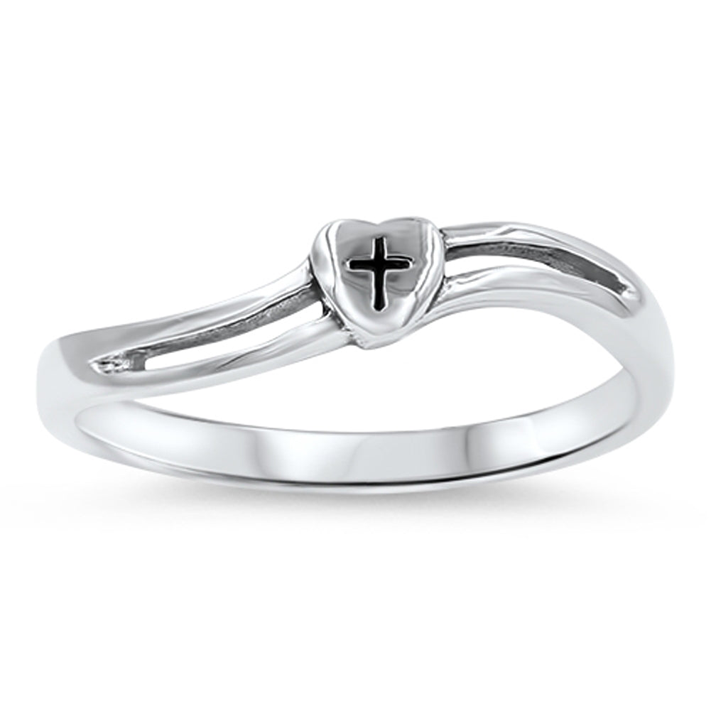 Heart Cross Oxidized Wave Cutout Ring New .925 Sterling Silver Band Sizes 4-10