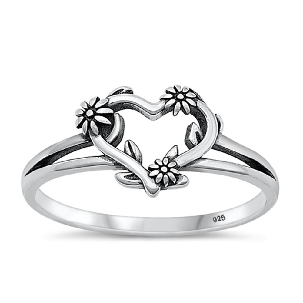Sterling Silver Heart & Flowers Ring
