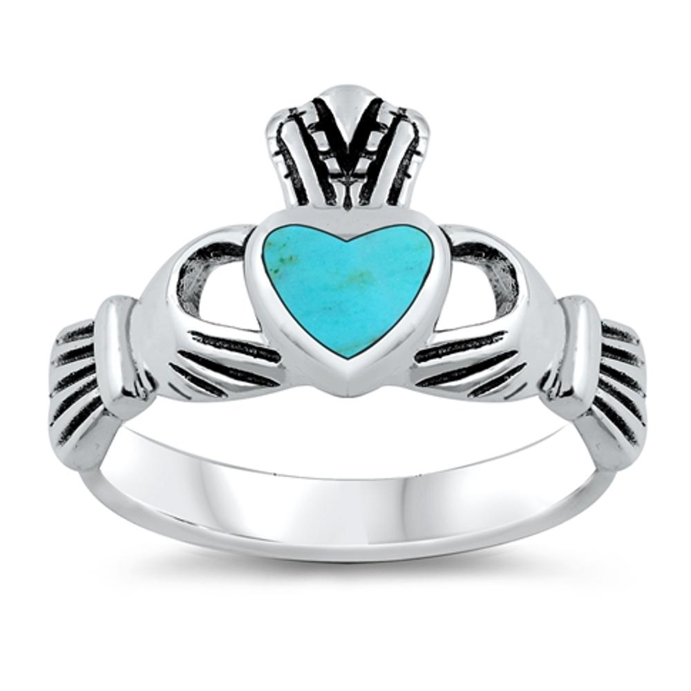 Claddagh Heart Turquoise Cute Ring New .925 Sterling Silver Band Sizes 4-9