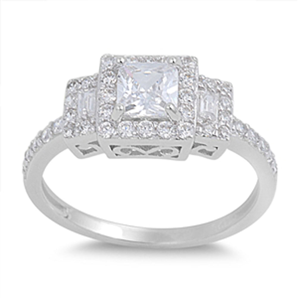 Sterling Silver Woman's White CZ Ring Wholesale Engagement Band 8mm Sizes 5-10